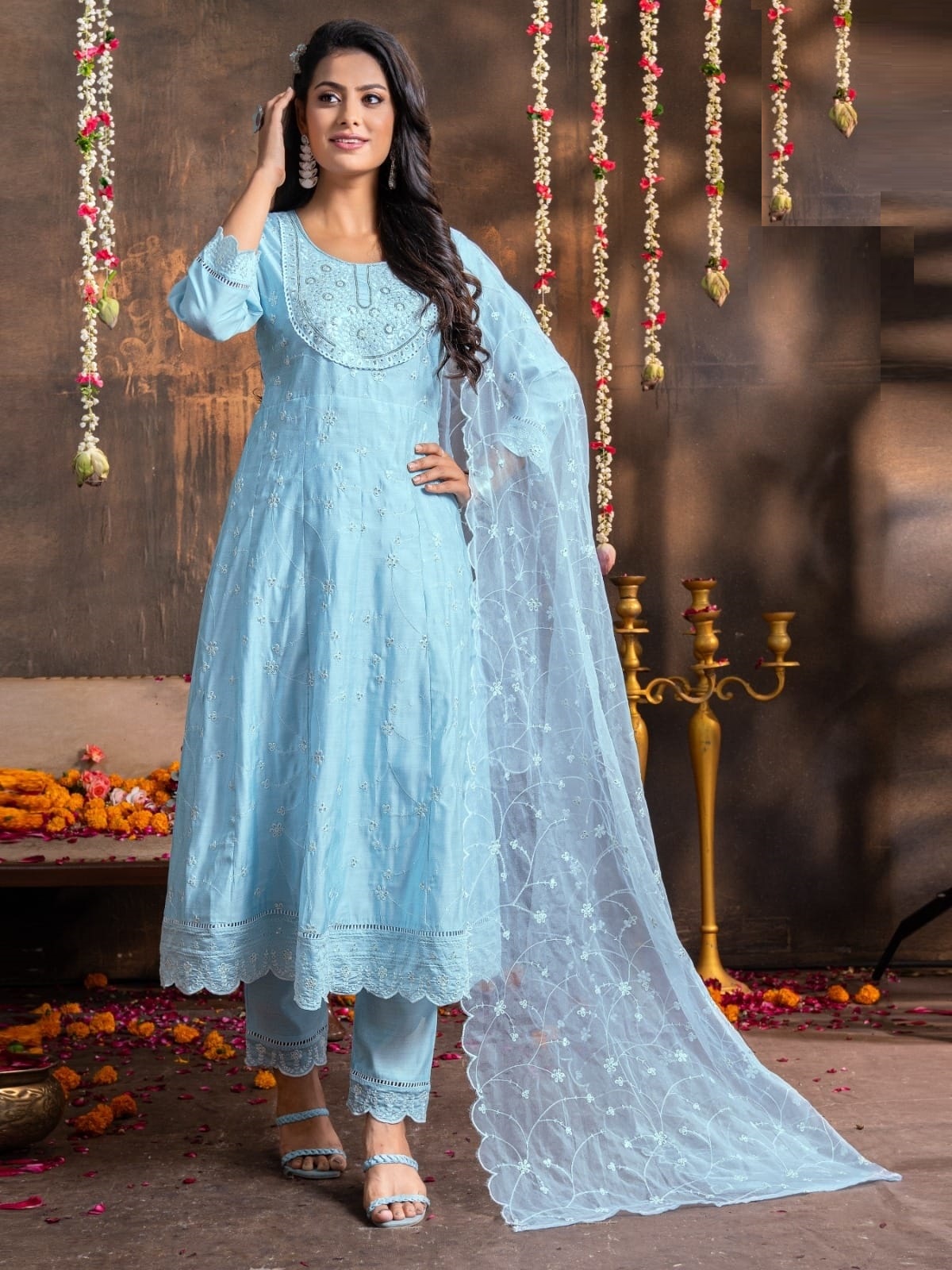 Premium silk anarkali suit with organza dupatta and plain bottom